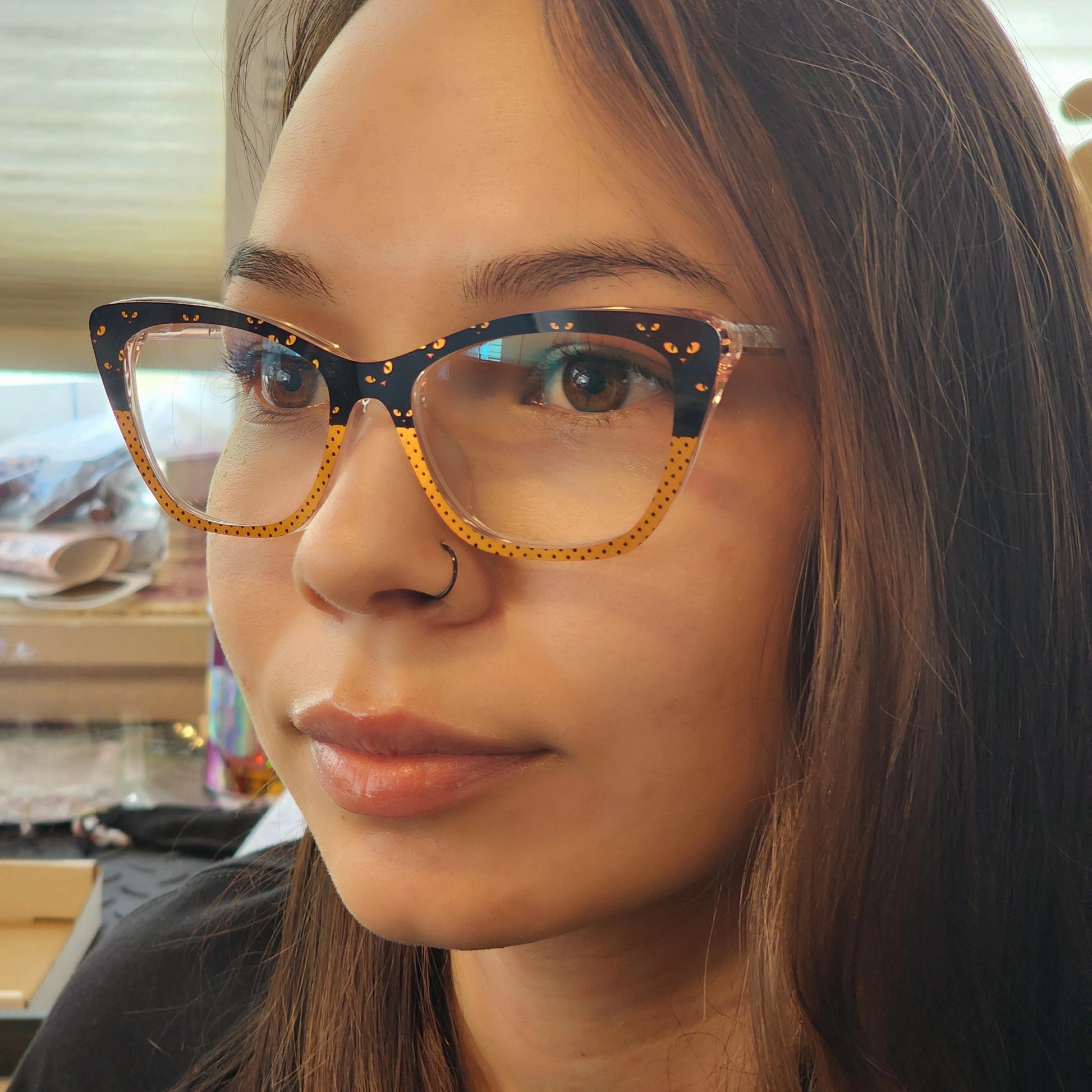 Cat Eyes Split Pin Dots Printed Magnetic Eyeglasses Topper • Flamingo Lady Collab Collection