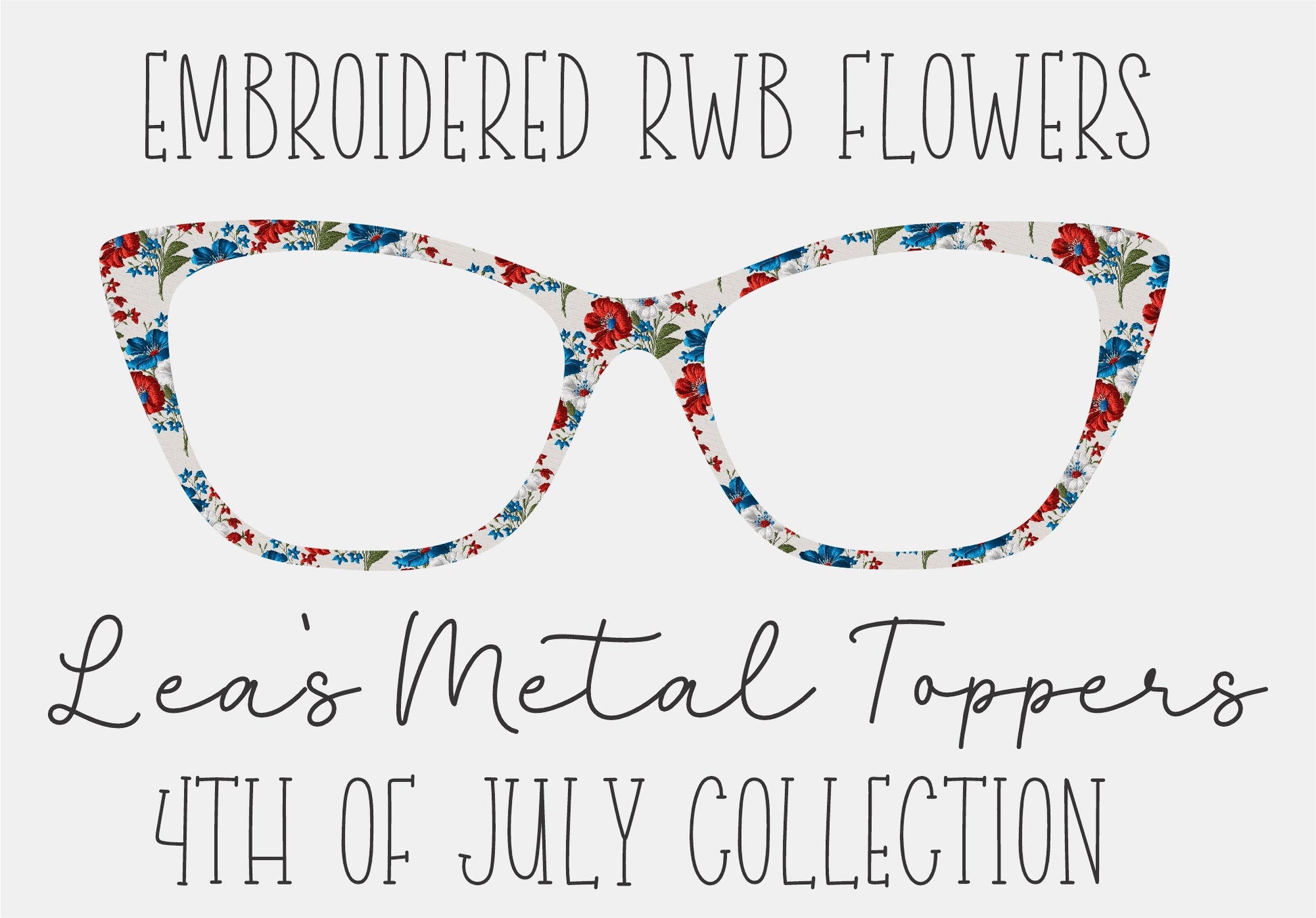 EMBROIDERED RWB FLOWERS Eyewear Frame Toppers COMES WITH MAGNETS
