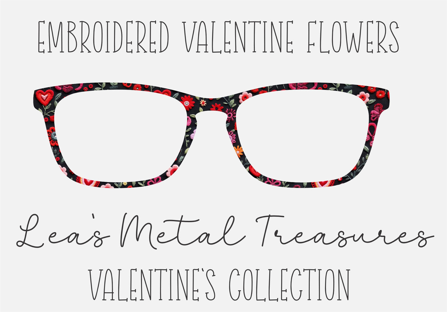 EMBROIDERED VALENTINE FLOWERS Eyewear Frame Toppers COMES WITH MAGNETS