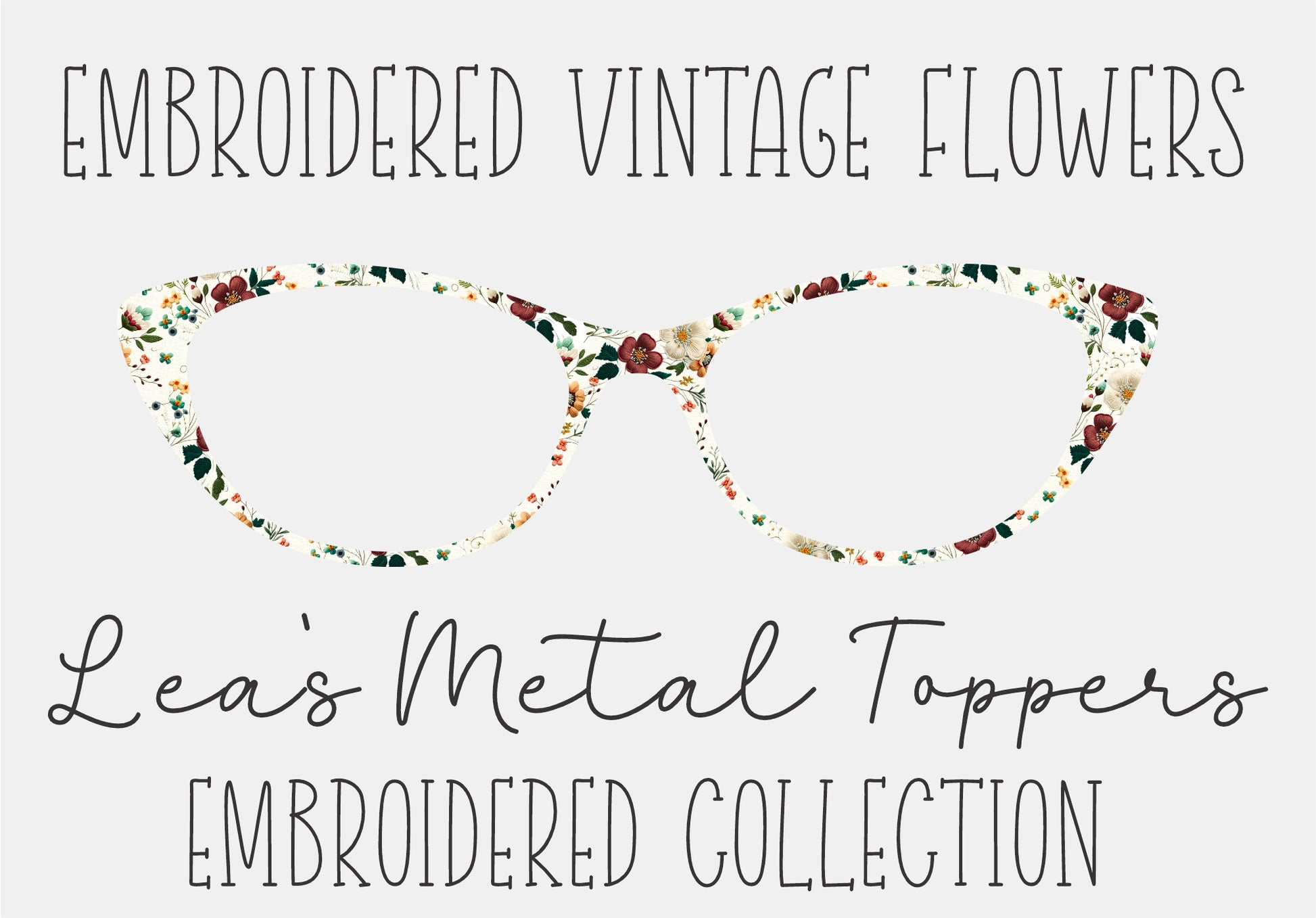 EMBROIDERED VINTAGE FLOWERS Eyewear Frame Toppers COMES WITH MAGNETS
