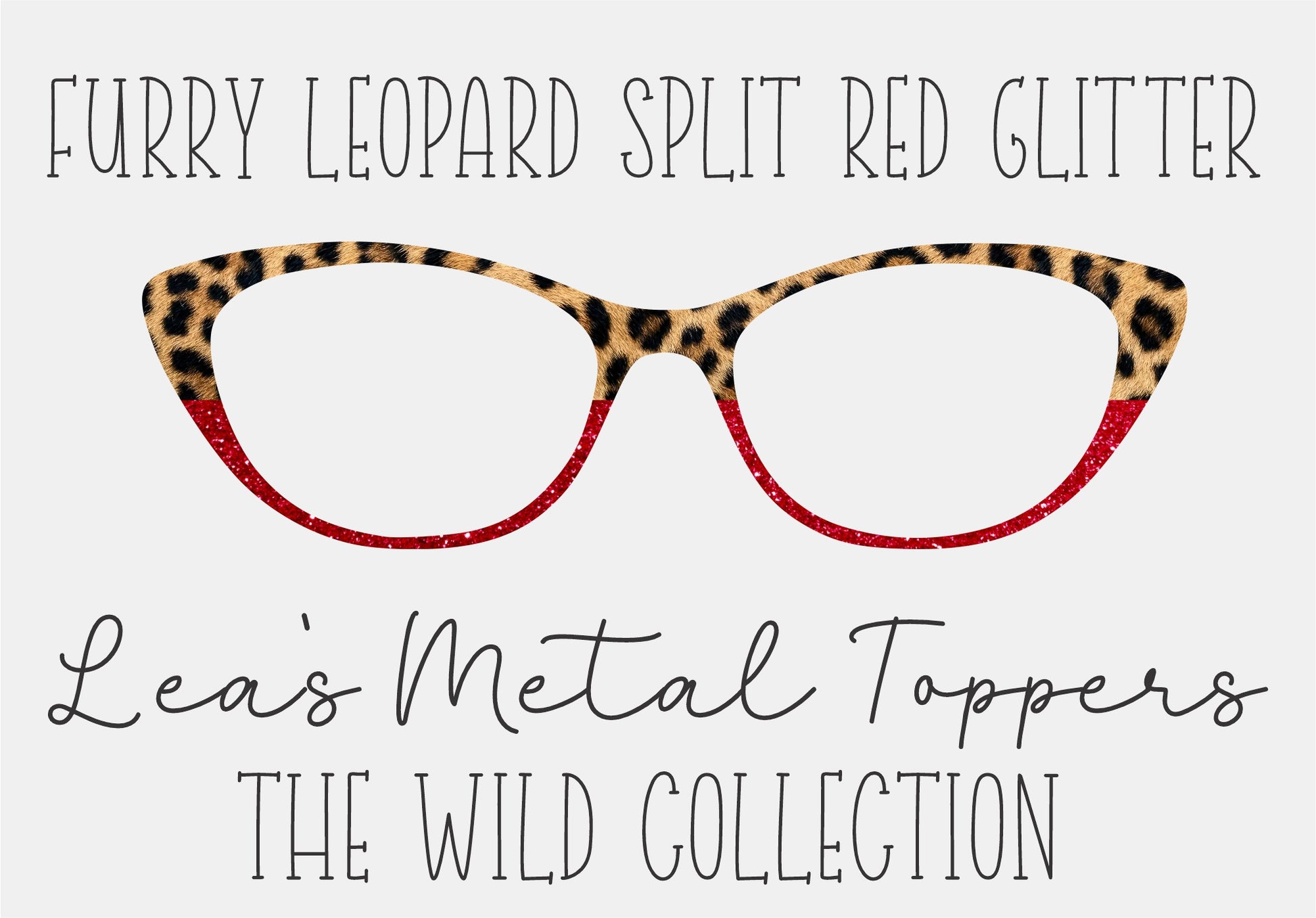 FURRY LEOPARD SPLIT RED GLITTER Eyewear Frame Toppers COMES WITH MAGNETS