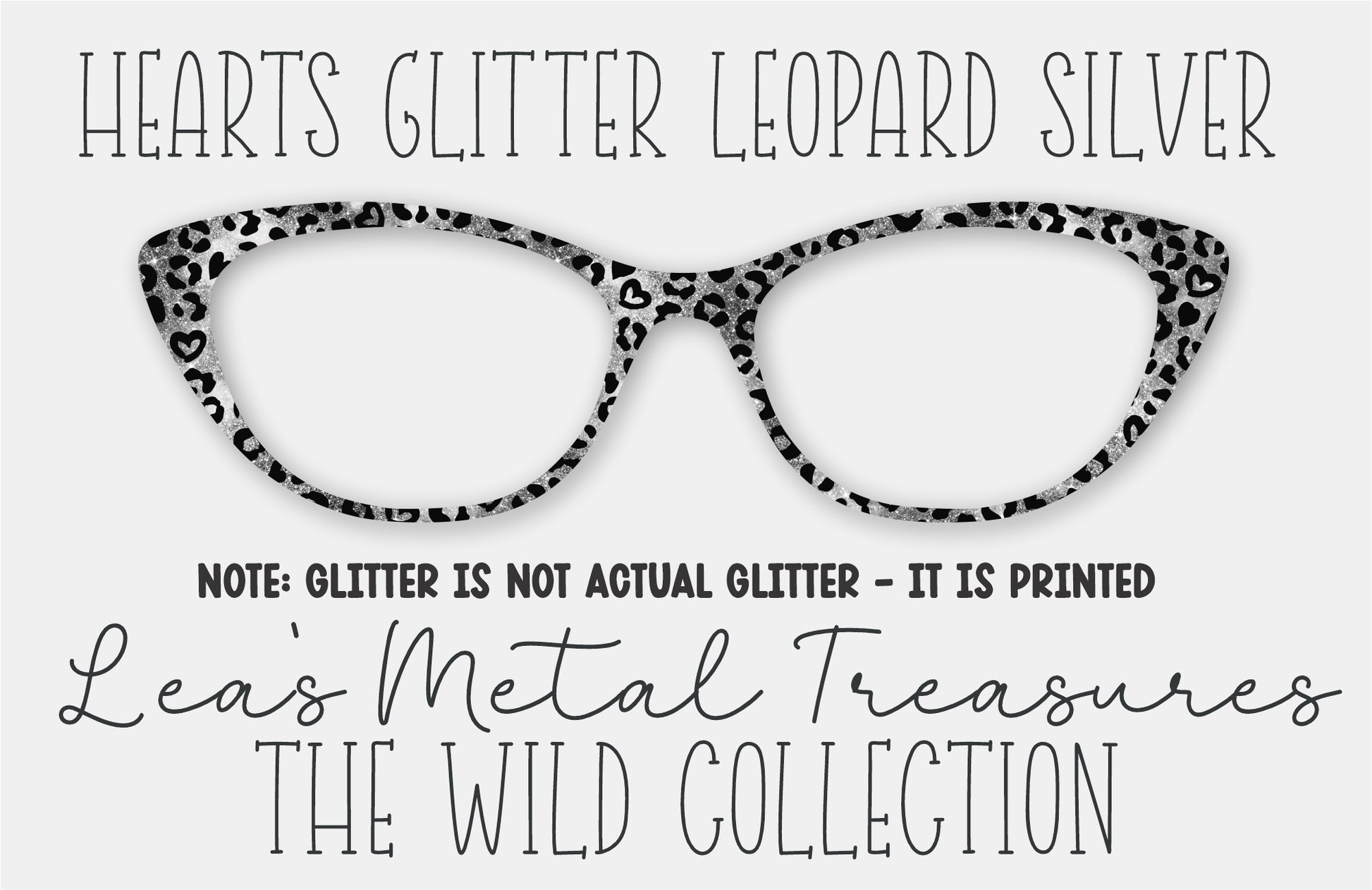 Hearts Glitter Leopard Silver Eyewear Frame Toppers
