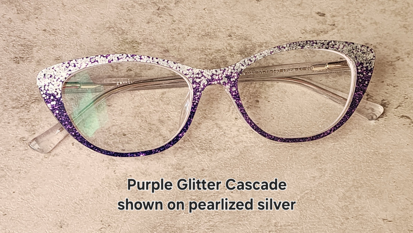 PURPLE GLITTER CASCADE Eyewear Frame Toppers COMES WITH MAGNETS